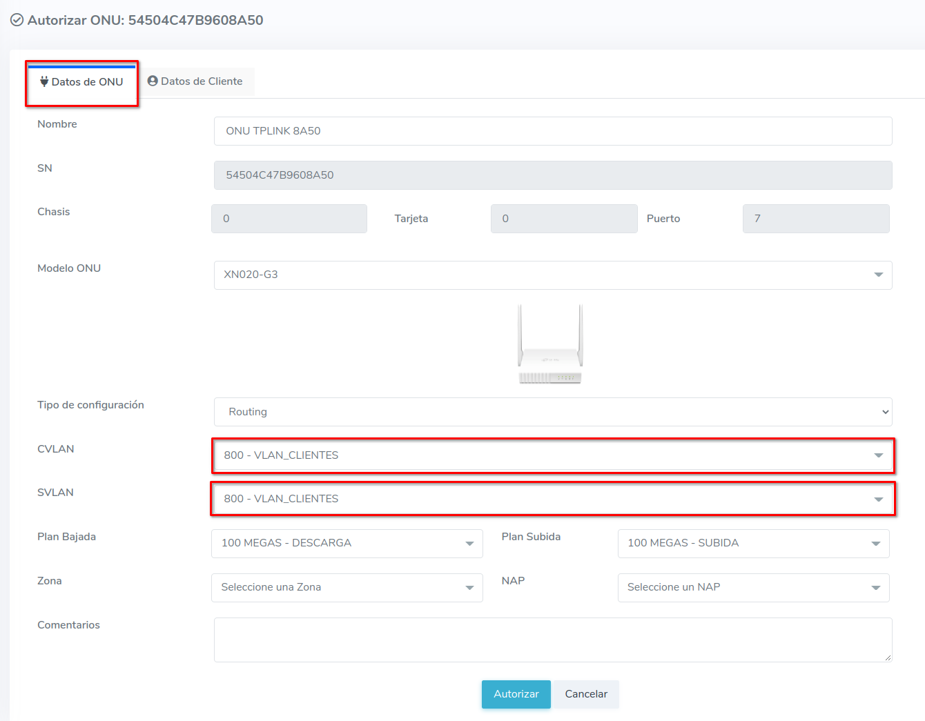 Al conectar un equipo a la OLT, este debe ser autorizado para poder establecer una conexión, a continuación se explican los pasos a seguir para autorizar Onu's en OLT's TP-Link Serie DS-P7001 desde AdminOLT.