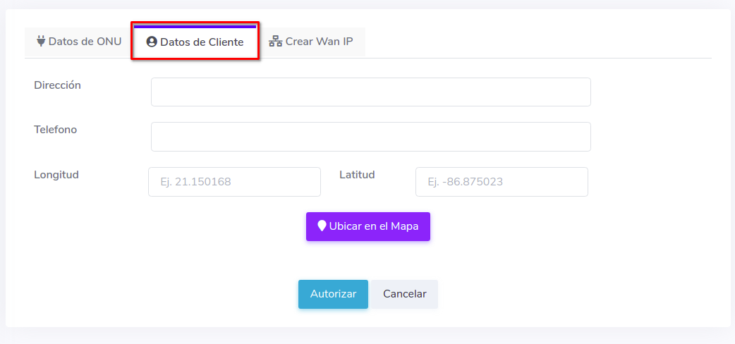 Por el momento no se puede crear la WAN desde Autorizar ONU dado que tenemos que esperar que la OLT configure correctamente la ONU, para crear una WAN IP al momento de autorizar, se recomienda leer el siguiente manual que habla sobre el tema más a fondo; Configuración WAN IP VSOL EPON