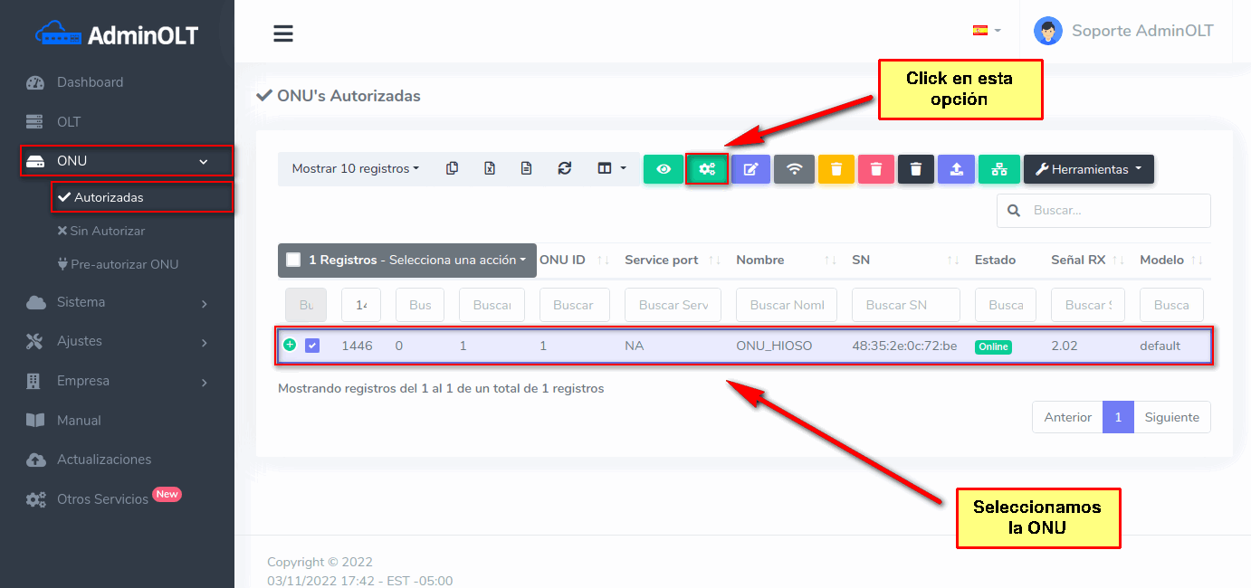 Tome en cuenta que el puerto PON de la OLT debe tener deshabilitados el modo NonAuth. Si tiene dudas sobre este tema puede consultar el siguiente manual; Configurar Puerto PON