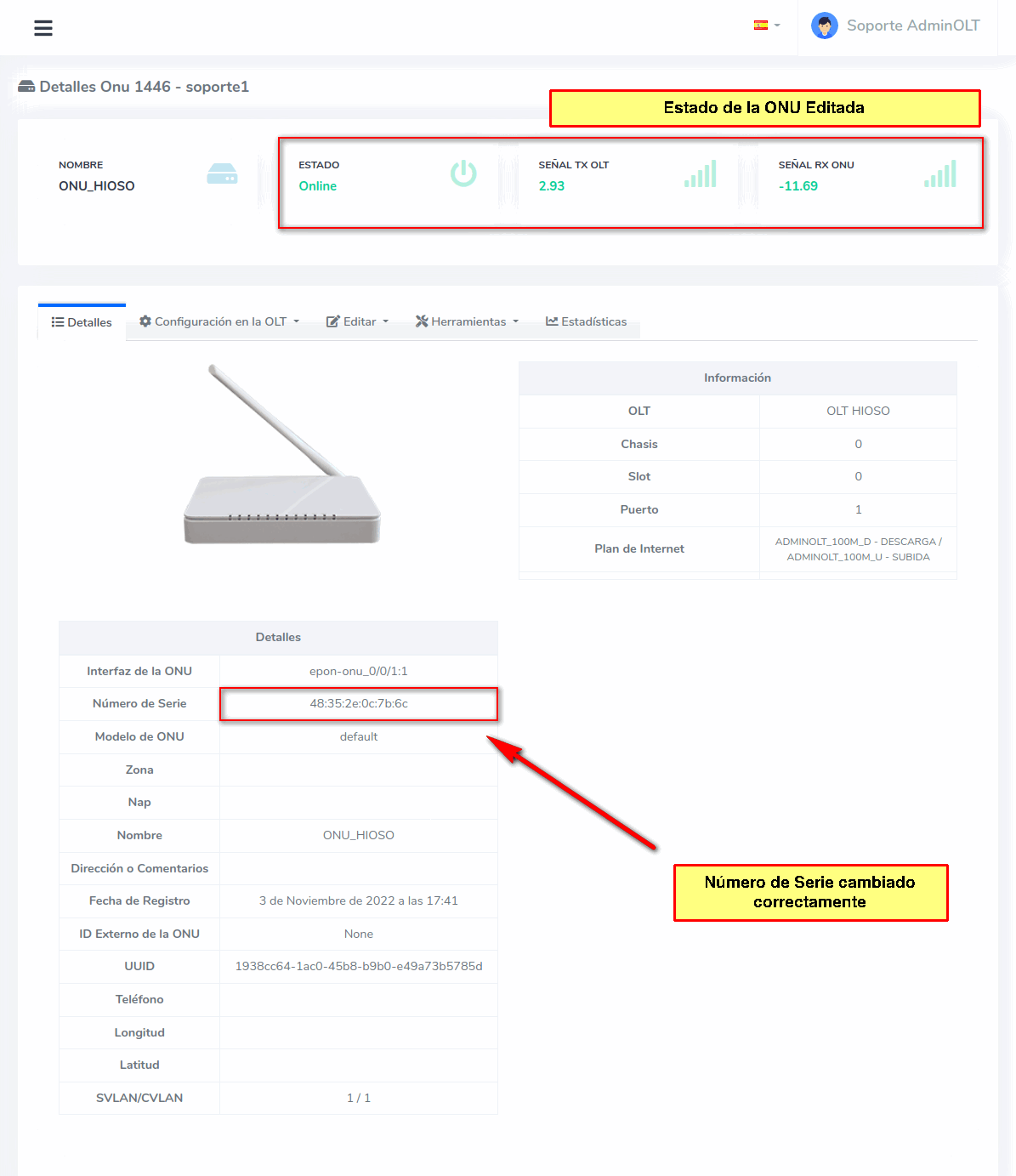 Editar ONU Hioso por Numero de Serie (SN)