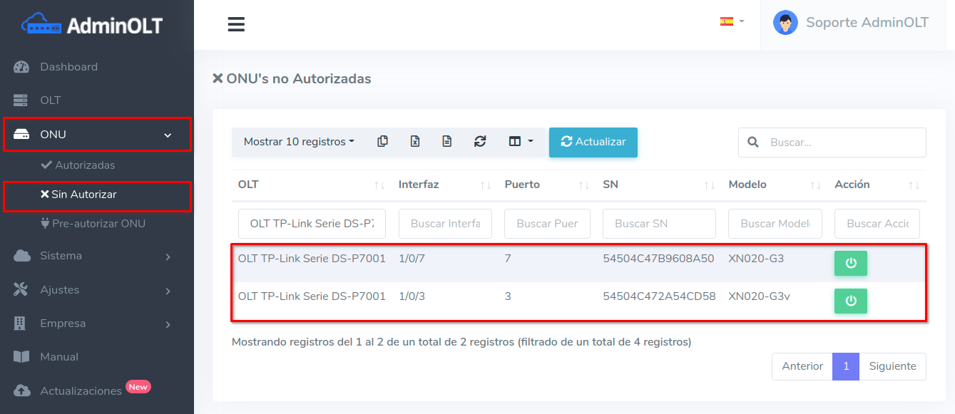 En AdminOLT podemos editar información de una ONU Autorizada en la OLT, supongamos que alguna de las ONUs que tenemos autorizadas en el sistema se estropea. Tomaremos como ejemplo esta situación para explicar el propósito de esta función. Así que en ese caso en AdminOLT al editar ONU por SN podemos tomar información de alguna ONU no Autorizada y usarla, sin perder la configuración inicial que teníamos.