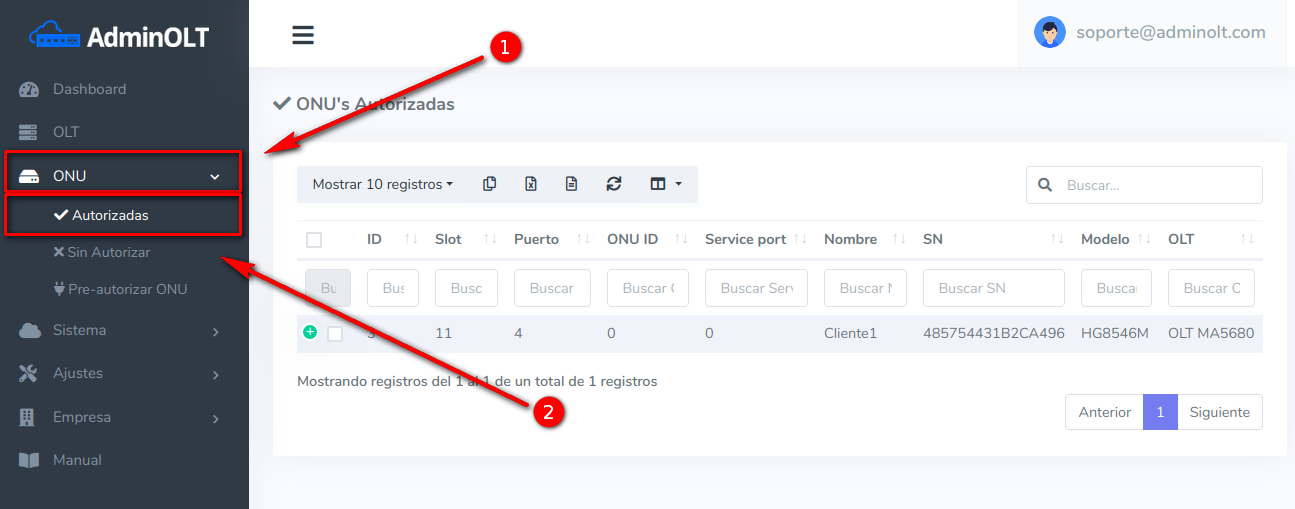 - 2. Eliminar ONU solo de AdminOLT: ¿Como elimino una ONU Autorizada solo de AdminOLT sin eliminarla de mi OLT?