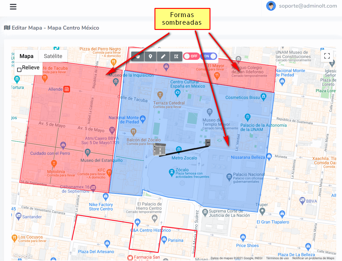 Una Geozona es una herramienta que nos puede ayudar a describir mas acerca de nuestro mapa como limitar los lugares donde damos servicios, donde no podemos dar servicios por alguna razón, también nos puede servir para dibujar lineas que representen algo importante. A continuación se muestran algunos ejemplos.