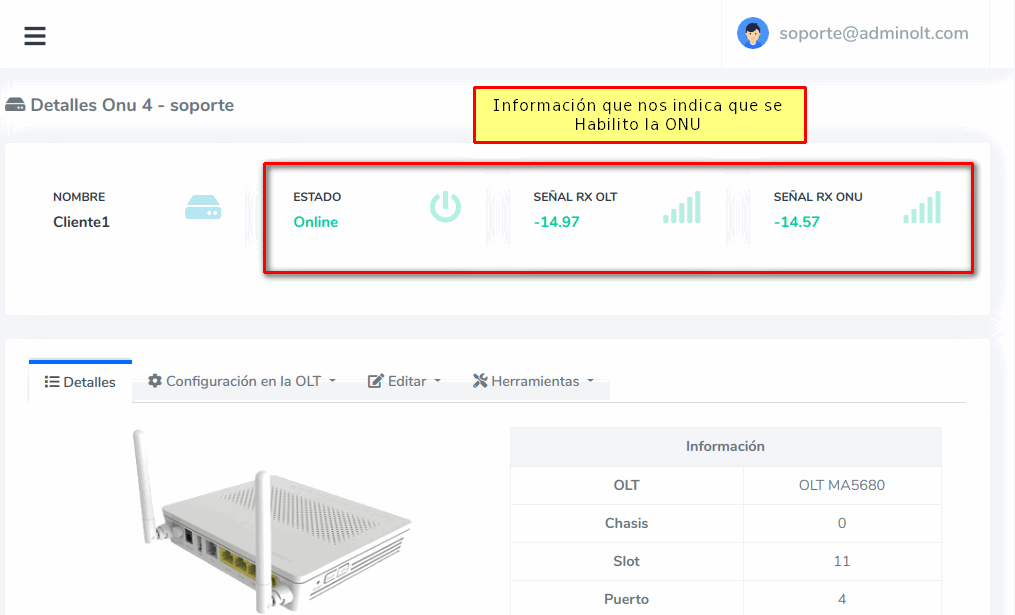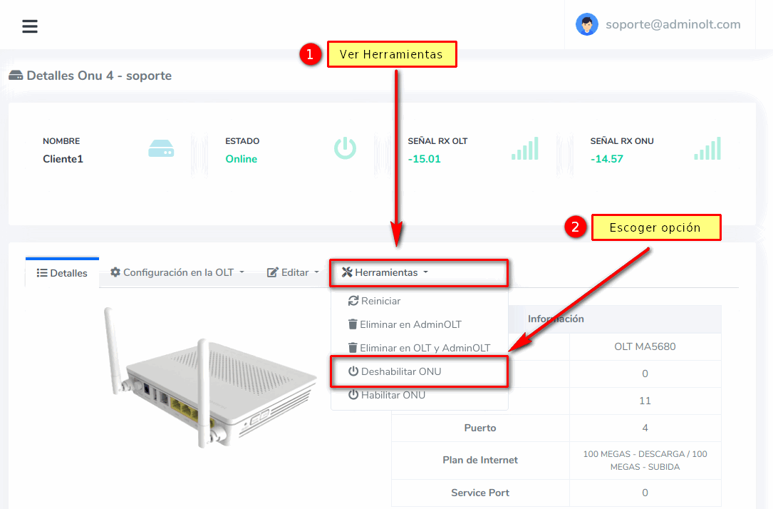 Para ver como deshabilitar una ONU puede leer el apartado ¿Como puedo deshabilitar una ONU Autorizada?, de igual manera para ver como habilitar una ONU puede leer el apartado ¿Como puedo habilitar una ONU Autorizada?